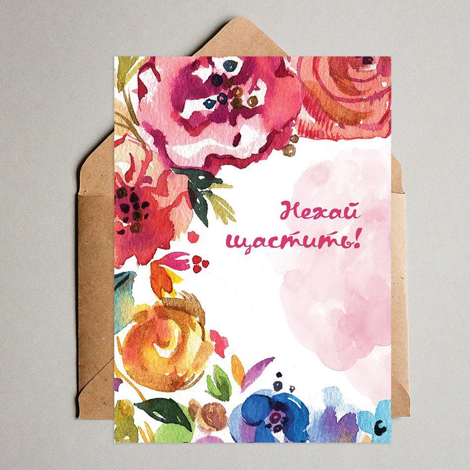 Листівка до свята Нехай щастить розміром 10х15 см.